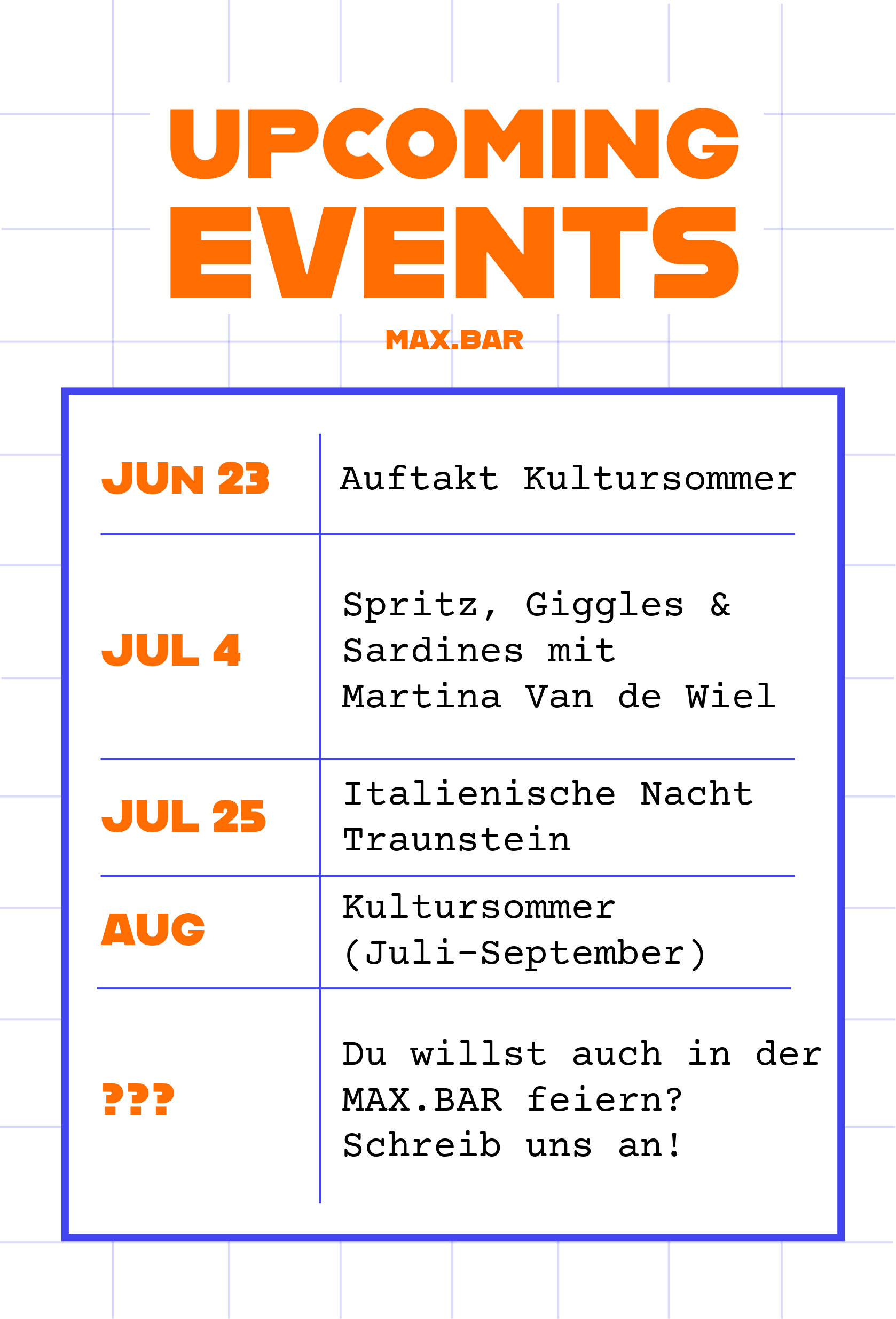 WE ARE OPEN. WE ARE OPEN. WE ARE OPEN. MAX.BAR FOOD.DRINKS.SPRITZ.SNACKS. FOOD.DRINKS.SPRITZ.SNACKS. FOOD.DRINKS.SPRITZ.SNACKS. SPEISEKARTE DER MAXPLATZ WAR NOCH NIE SO COOL. DI-MI 10-20 UhrDO-SA 10-22 Uhr CAFE . KIOSK. BAR. KITCHEN. CAFE . KIOSK. BAR. KITCHEN. CAFE . KIOSK. BAR. KITCHEN. ESSEN. KAFFEE. TOGO. SNACK. FRÜHSTÜCK. DRINKS. ESSEN. KAFFEE. TOGO. SNACK. FRÜHSTÜCK. DRINKS. ESSEN. KAFFEE. TOGO. SNACK. FRÜHSTÜCK. DRINKS.